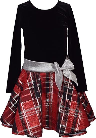 Holiday Velvet to Plaid Drop Waist Dress for Toddlers, Little Girls, and Big Girls