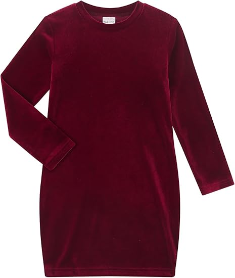 Girl's Long Sleeve Dress Velvet Fall Midi Round Neck Party Dresses for Kids 4-13Y