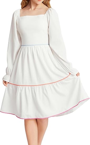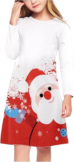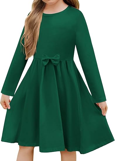 Girls Long Sleeve Dress A line Twirly Skater Casual Bow Tie Dress