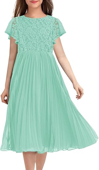 Girls Elegant Lace Ruffle Sleeve A-Line Formal Wedding Party Flower Girl Dress 6-12 Years