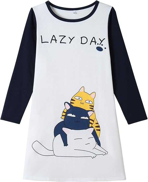Big Girl's Lovely Cartoon Nightgown Cute Cat Bunny Sleepshirt Long Sleeve Sleepdress Nighty