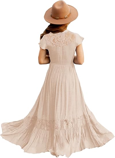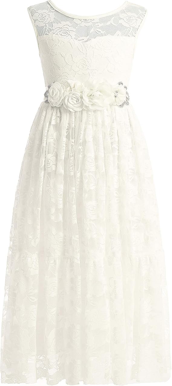Big/Little Girls Lace Bridesmaid Dress with Belt Sheer Back Bohemian Kids Wedding Pageant Party Maxi Dresses