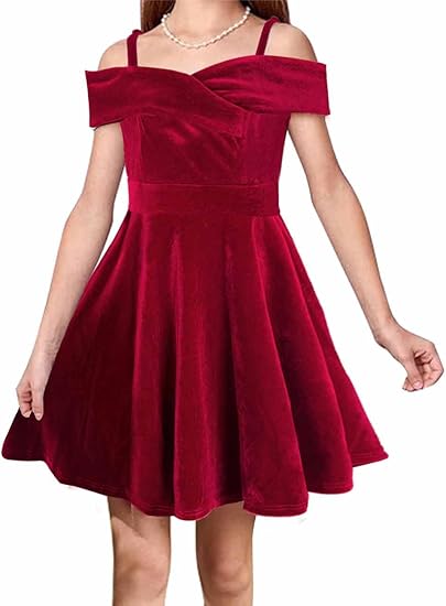 Teen Girls Princess Dresses Velvet Elegant Cold Shoulder A-line Swing Party Dress for Kids,8-14 Years