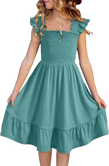 Teen Girls Summer Dresses Smocked Sleeveless Sundresses with Pockets Size 6-15 Years